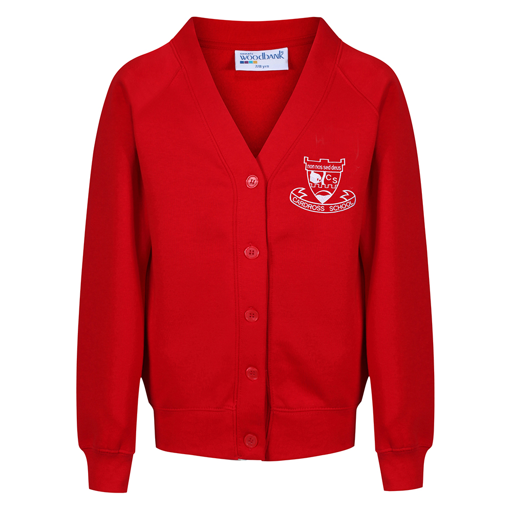 School sweatshirt cardigan embroidered with the school logo50% polyester & 50% cotton40 degree wash.