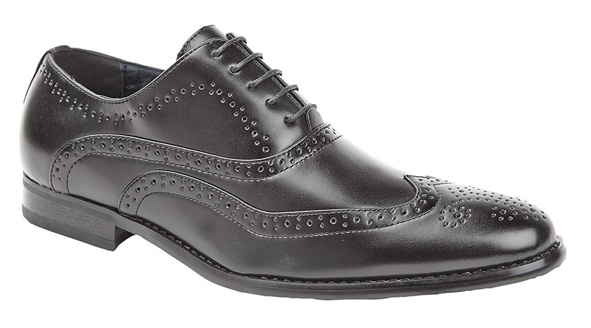 Black PU 5 Eye Brogue Oxford Shoe.