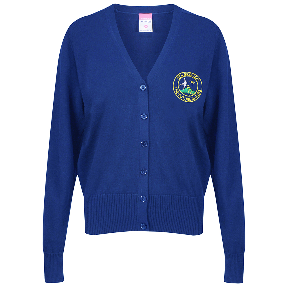 School knitted cardigan embroidered with the school logoFully washablePlease do not tumble dry.