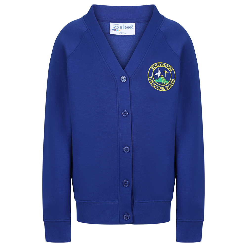 School sweatshirt cardigan embroidered with the school logo50% polyester & 50% cotton40 degree wash.