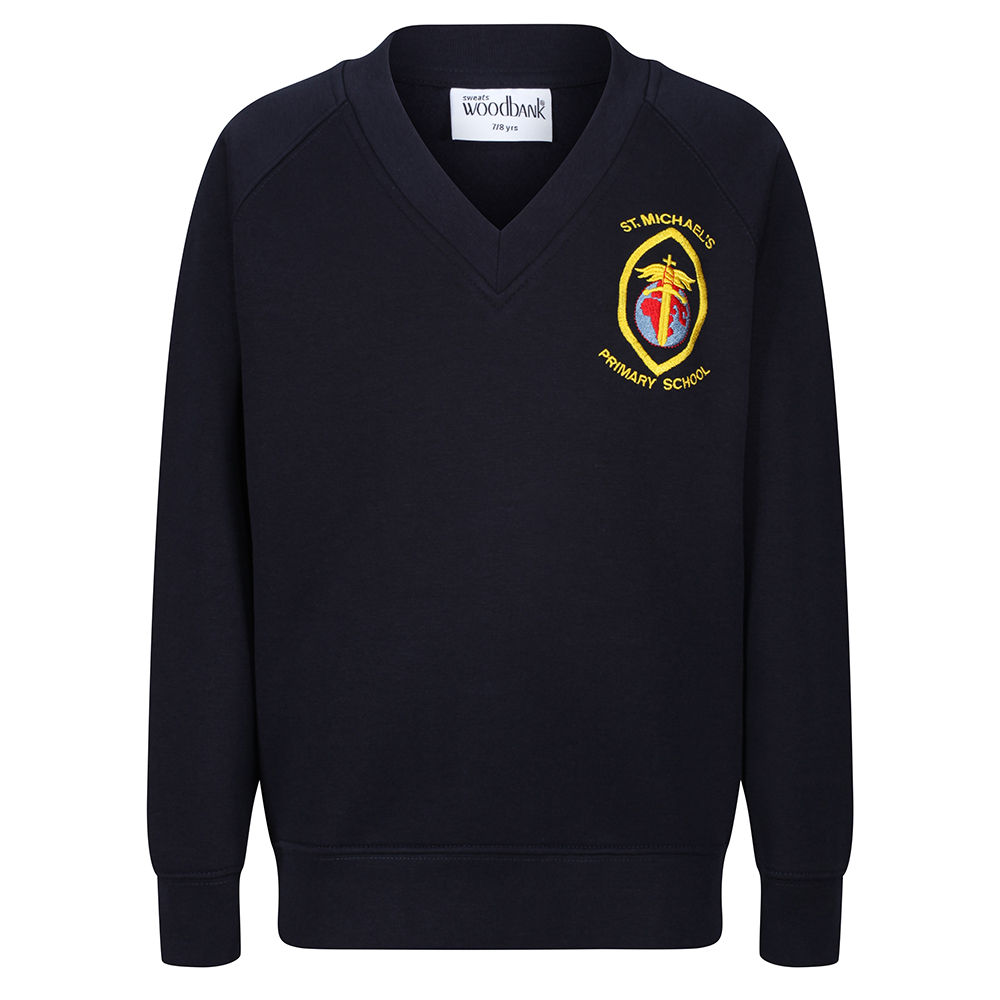 School v-neck sweatshirt embroidered with the school logo50% polyester & 50% cotton40 degree wash.