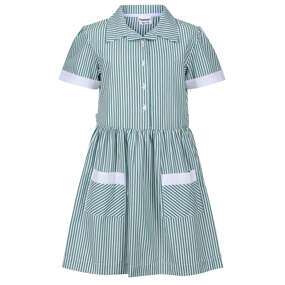 Contrast white trim on sleeves and pockets.Tie belt at back.Pointed revere collar.Quality corded gingham fabric.65% Polyester / 35% Cotton.